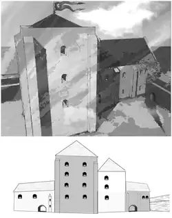 Cette description qui permet de relever quelques constantes communes à d'autres sites d'époque comparable[14],[note 7] ne rend certainement pas compte de la totalité de l'édifice comtal, avec de probables constructions et annexes environnantes (en dehors du périmètre des fouilles modernes), sans compter l'utilisation éventuelle des deux tours antiques jouxtantes, creuses à l'étage, située à l'angle et au nord-ouest de l'enceinte du IVe siècle[15],[note 8].