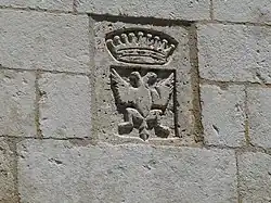 - ↑ L'emplacement de ce blason est visible sur une ancienne carte postale du portail de 1860 (Histoire de Villebois et de son château, 1982). Le blason actuel a été sculpté au XXe siècle par les de Fleury. Il se trouve que l'aigle bicéphale est aussi le blason des de Fleury, branche de Blanzac-Beauregard, avant la Révolution (réf. JM.Ouvrard).