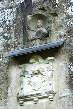 Au-dessus du portail au-dessus de l'entrée principale se trouvent les armoiries d'Arundell et une description de la possession de Wardour par les Arundell, érigée par Sir Matthew Arundell en 1578 pour célébrer sa récupération de la propriété après que la famille l'ait perdue lorsque Sir Thomas Arundell est exécuté en 1552. Au-dessus des armoiries se trouve la tête du Christ dans une niche avec l'inscription : Sub nomine tuo stet genus et domus[8].