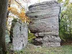 Le rocher nord, probablement le château de Wachelheim, est appuyé sur les vestiges de son mur d'enceinte[5]. Un passage à une dizaine de mètres de hauteur permet d'accéder à un escalier creusé dans le rocher et qui mène au sommet. Il s'y trouve des vestiges de mur en bossage[5].