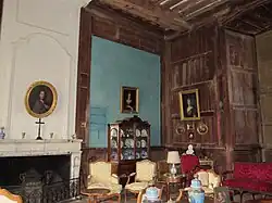 Le salon a aussi été transformé au XVIIIe siècle. La cheminée d’origine a disparu, et a été remplacée par une cheminée de style classique. Juste au-dessus de la cheminée on trouve un portrait de Michel II le Lou, officier de la garde du Roi, propriétaire du château entre 1663 et 1688[24].