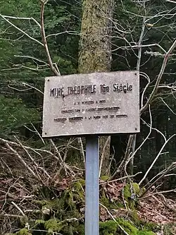 De l'autre côté du chemin, un panneau renseigne la distance avec la mine Théophile, estimée à 10 minutes à pied.