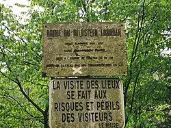 Un autre panneau indique que « la visite des lieux se fait aux risques et périls des visiteurs ».