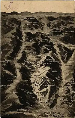 Ancienne vue aérienne de la région d'Urbeis, le château est sous le nom « Beilschstein »[29].