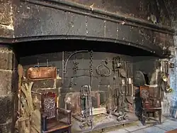- la cheminée en bois avec peinture de la grande salle au premier étage ;