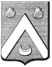Blason[4] : D'azur au chevron d'argent accompagné de deux coquilles en chef et d'un croissant en pointe, le tout d'argent.