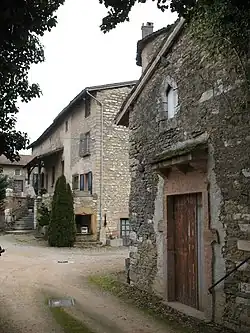 À l'intérieur de cette enceinte, à laquelle sont adossés divers communs, s'élève un donjon circulaire de 18 mètres de hauteur contre lequel s'appuie, au nord, l'ancien corps de logis, lui-même flanqué d'une petite tour ronde. Le donjon comprend un rez-de-chaussée voûté dépourvu de toute ouverture, un étage voûté d'arêtes occupé par une chapelle éclairée par trois étroites baies à arc en lancette et un second étage relié au précédent par un escalier pratiqué dans l'épaisseur du mur, que ceinture à l'extérieur une rangée de consoles de pierre destinées à soutenir des hourds auxquels donnaient accès trois ouvertures circulaires. Le logis comporte lui-même un rez-de-chaussée pourvu d'une vaste cheminée et un étage avec plafond à poutres apparentes à la française, qu'une petite porte met en communication avec la chapelle. Les divers bâtiments, y compris le donjon, sont couverts de toits plats en tuiles creuses.