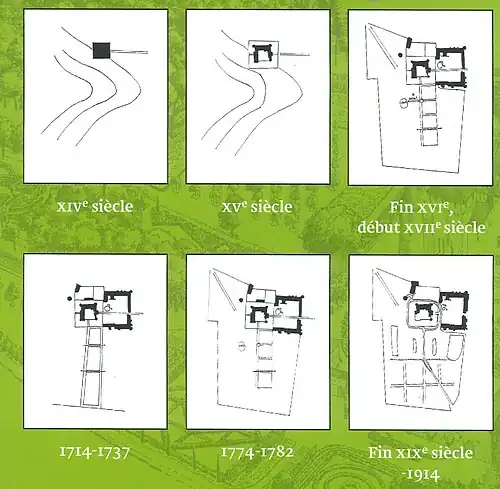 Au XVIIe siècle, les bâtiments au sud de l’avant-cour furent reconstruits et couverts de tuiles creuses car la faible pente des toitures ne permettait pas la pose de l’ardoise, qui nécessite une forte pente. La tradition locale utilisait la couverture d’ardoises pour les bâtiments nobles et la tuile pour les bâtiments utilitaires.