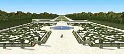 Le château s'intégrait alors à la ville fortifiée. Un jardin à la française se trouvait de part et d'autre du château au nord et au sud. Un canal était alimenté par le Bréon, avec deux bras partant des douves disposées de manière géométrique, la branche orientale qui était la plus longue rejoignait un bassin situé en aval de la ferme de Sourdeau. Un grand parc arboré clôturé traversé par de grandes allées se situait au sud. Une longue perspective nord-sud partait de la ville fortifiée, passait par le château et ses jardins et traversait le parc.