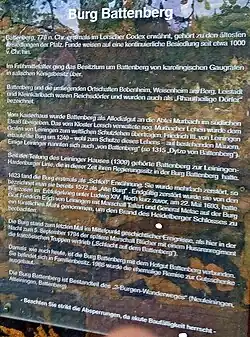 Dans la nuit du 5 septembre 1794, le futur prince Blücher et ses troupes expulsèrent l'armée révolutionnaire française qui avait occupé la place stratégiquement importante pendant la première guerre de coalition. Le 18 du même mois, les combats reprirent pour le complexe du château, les futurs généraux Friedrich Wilhelm von Müffling et Joseph von Clossmann menant la prise du Battenberg[6],[7].Aujourd'hui, la ruine est une propriété privée, mais elle est principalement ouverte au public en raison de l'activité d'un restaurant. L'emplacement exposé permet une large vue à l'est de la plaine du Rhin, de la Bergstraße et de l'Odenwald.