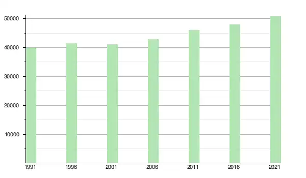 Avec une population d'environ 48 000 personnes lors du recensement canadien de 2016[5], Châteauguay constitue la 3e ville en importance, par la population, de la Rive-Sud de Montréal, la 5e en Montérégie et la 23e au Québec. Lors du recensement canadien de 2021, la ville franchit formellement le cap des 50 000 habitants.