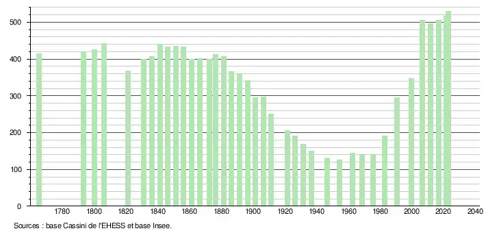 - ↑ Fiches Insee - Populations de référence de la commune pour les années 2006, 2007, 2008, 2009, 2010, 2011, 2012, 2013, 2014, 2015, 2016, 2017, 2018, 2019, 2020, 2021 et 2022.