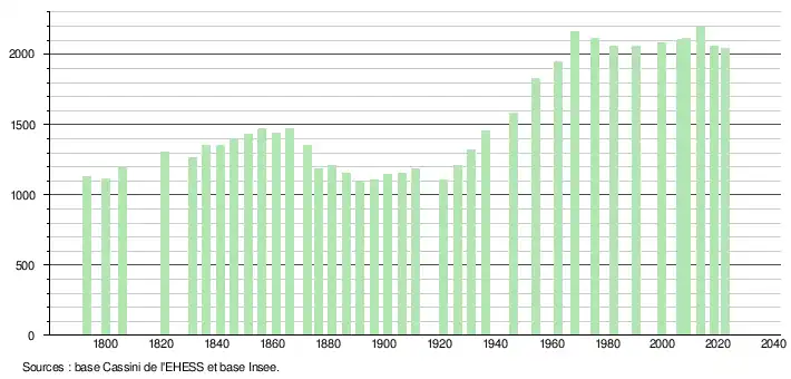 - ↑ Fiches Insee - Populations de référence de la commune pour les années 2006, 2007, 2008, 2009, 2010, 2011, 2012, 2013, 2014, 2015, 2016, 2017, 2018, 2019, 2020, 2021 et 2022.