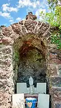 - ↑ Il ne reste pratiquement rien de cet édifice, qui se trouvait à l'emplacement du cimetière.