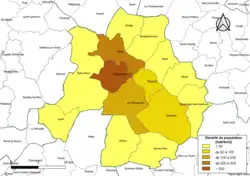 - ↑ Les densités de populations sont calculées automatiquement dans un SIG en utilisant la superficie géographique de la commune et non la superficie cadastrale définie par l'Insee. Des différences de classe peuvent ainsi éventuellement apparaître pour les communes qui se situent en limite de franchissement de seuil de classe.