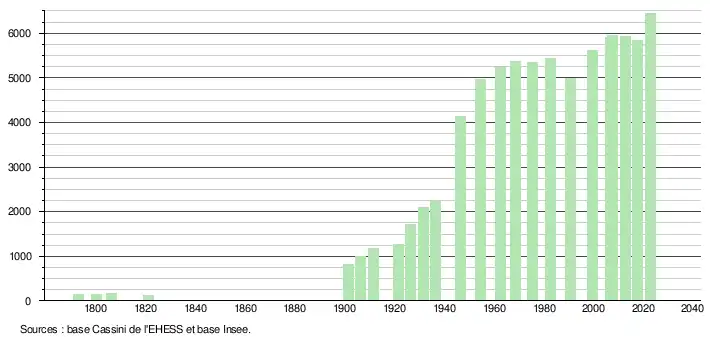 - ↑ Fiches Insee - Populations de référence de la commune pour les années 2006, 2007, 2008, 2009, 2010, 2011, 2012, 2013, 2014, 2015, 2016, 2017, 2018, 2019, 2020, 2021 et 2022.