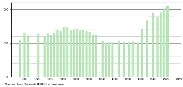 - ↑ Population municipale de référence en vigueur au 1er janvier 2025, millésimée 2022, définie dans les limites territoriales en vigueur au 1er janvier 2024, date de référence statistique : 1er janvier 2022.