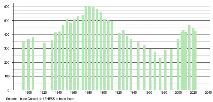 - ↑ Fiches Insee - Populations de référence de la commune pour les années 2006, 2007, 2008, 2009, 2010, 2011, 2012, 2013, 2014, 2015, 2016, 2017, 2018, 2019, 2020, 2021 et 2022.