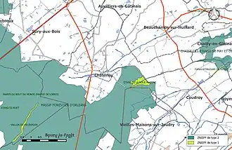 Carte de la commune de Châtenoy (Loiret) et des communes limitrophes.