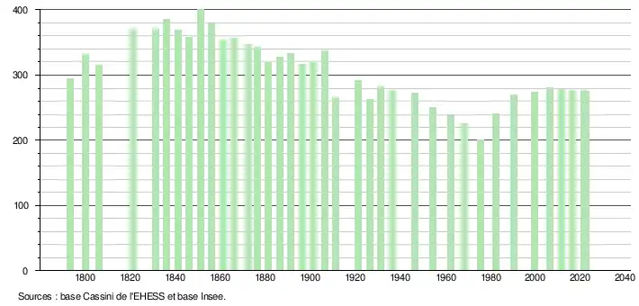 - ↑ Fiches Insee - Populations de référence de la commune pour les années 2006, 2007, 2008, 2009, 2010, 2011, 2012, 2013, 2014, 2015, 2016, 2017, 2018, 2019, 2020, 2021 et 2022.