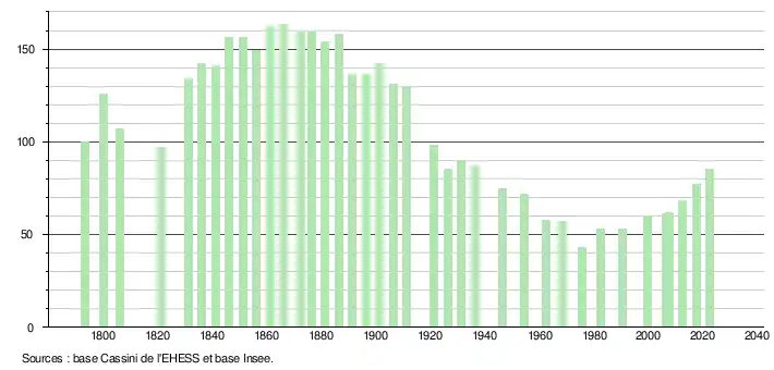 - ↑ Fiches Insee - Populations de référence de la commune pour les années 2006, 2007, 2008, 2009, 2010, 2011, 2012, 2013, 2014, 2015, 2016, 2017, 2018, 2019, 2020, 2021 et 2022.