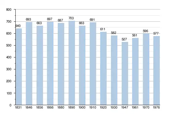 - Bronnen:NIS, Opm:1831 tot en met 1970=volkstellingen