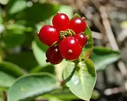 Le fruit est une baie ovoïde, rouge, de 8 mm de diamètre. Elle est légèrement toxique[4].
