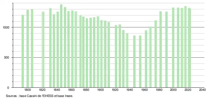 - ↑ Fiches Insee - Populations de référence de la commune pour les années 2006, 2007, 2008, 2009, 2010, 2011, 2012, 2013, 2014, 2015, 2016, 2017, 2018, 2019, 2020, 2021 et 2022.