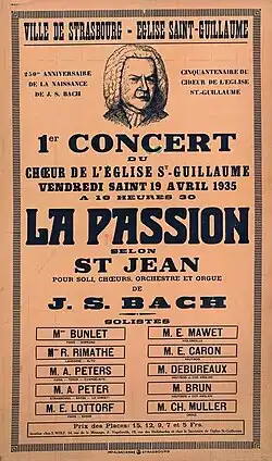 - ↑ DNA, « « Passion selon saint Matthieu » : deux concerts programmés par le Chœur de Saint-Guillaume », DNA, (lire en ligne)