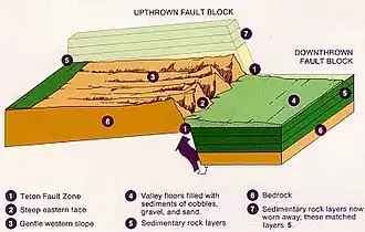 La chaîne Teton s'est formée sur un axe nord-sud il y a six à neuf millions d'années, ce qui en fait la plus jeune chaîne de l'ensemble des montagnes Rocheuses, lorsque le bloc situé à l'ouest de la faille de Teton s'est élevé alors que le bloc de l'est s'est effondré, donnant naissance à une vallée appelée « Jackson Hole ».