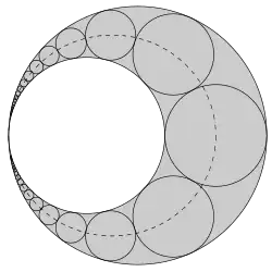 - ↑ (en) Roger Cuculière, William J. Gilbert, « Area of a chain of circles », The American Mathematical Monthly, vol. 94, No. 6, june - july 1987, p. 550-552 (lire en ligne