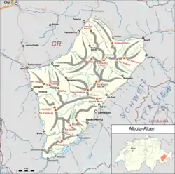 Carte des Alpes orientales avec la chaîne de l'Albula en 65. | |