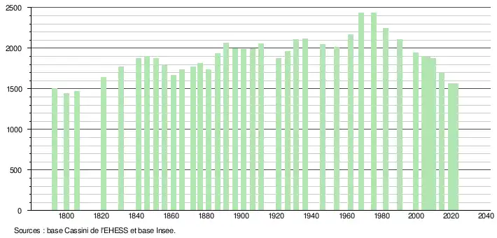 - ↑ Fiches Insee - Populations de référence de la commune pour les années 2006, 2007, 2008, 2009, 2010, 2011, 2012, 2013, 2014, 2015, 2016, 2017, 2018, 2019, 2020, 2021 et 2022.