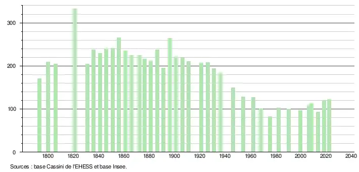 - ↑ Fiches Insee - Populations de référence de la commune pour les années 2006, 2007, 2008, 2009, 2010, 2011, 2012, 2013, 2014, 2015, 2016, 2017, 2018, 2019, 2020, 2021 et 2022.
