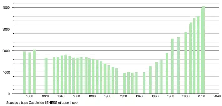- ↑ Fiches Insee - Populations de référence de la commune pour les années 2006, 2007, 2008, 2009, 2010, 2011, 2012, 2013, 2014, 2015, 2016, 2017, 2018, 2019, 2020, 2021 et 2022.