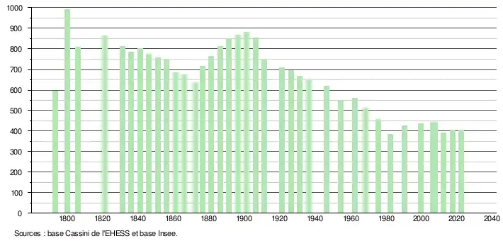 - ↑ Population municipale de référence en vigueur au 1er janvier 2025, millésimée 2022, définie dans les limites territoriales en vigueur au 1er janvier 2024, date de référence statistique : 1er janvier 2022.