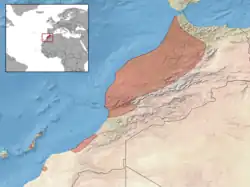 Cette espèce se rencontre au Maroc et au Sahara occidental[2].