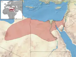 Cette espèce se rencontre en Libye, en Égypte, dans le Sud d'Israël et dans l'ouest de la Jordanie[2].