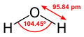 | Angle de liaison (H–X–H) (gaz) | 104,45° | 92,1° | 91° | 90° | 90,9° (prédiction)[3] |