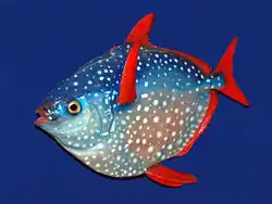 Les poissons aussi sont des animaux exothermes (qui contrôlent leur température corporelle à l'aide de moyens externes), même si certaines espèces, comme le Thon rouge du Pacifique (Thunnus orientalis), parviennent à réguler leur température corporelle en produisant de la chaleur à partir de l'activité musculaire, et grâce à un organe appelé le rete mirabile (qui fonctionne comme un échangeur de chaleur), réchauffant ainsi certains de leurs organes. En 2015, le premier cas connu de poisson entièrement homéotherme a été découvert : le Lampris royal ou opah (Lampris guttatus)[13]. Il génère de la chaleur par le battement de ses nageoires et distribue ensuite cette chaleur à la totalité de son corps par la circulation du sang.