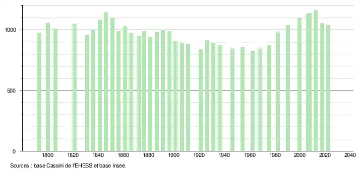 - ↑ Fiches Insee - Populations de référence de la commune pour les années 2006, 2007, 2008, 2009, 2010, 2011, 2012, 2013, 2014, 2015, 2016, 2017, 2018, 2019, 2020, 2021 et 2022.