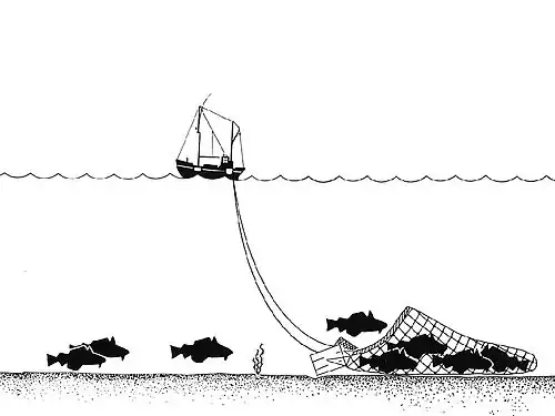 Au-delà de la biomasse capturée, le chalut de fond est aussi responsable de blessures ou mortalités sur de nombreuses espèces de fond, et d'une dégradation répétée du fond marin lui-même[45] : de nombreuses études mettent en évidence les dommages physiques et écologiques causés sur les habitats des fonds marins.