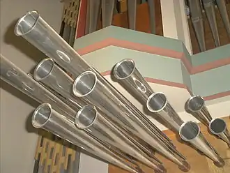 Étant visibles, les tuyaux de chamades sont toujours plus soignés que ceux qui sont enfermés dans le buffet. Bien que faisant partie des éléments sonores, ils constituent aussi un élément décoratif. Ainsi le bord du résonateur est généralement ourlé et le métal brillant peut même être doré.