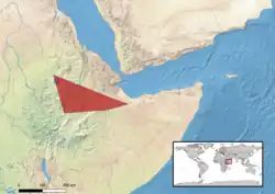 Cette espèce se rencontre en Éthiopie, en Érythrée, à Djibouti et en Somalie[2].