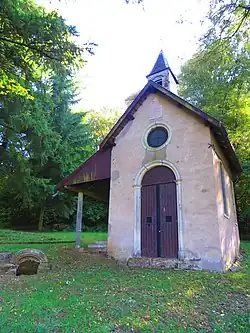 - La petite chapelle Saint-Roch, construite en 1819, est également visible depuis la RN 74, mais du côté opposé à celui du village, nichée en bordure de forêt[30].