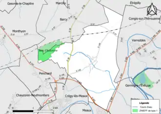 La commune est situé à environ7 km par la route au nord de Meaux[1],[Note 1].