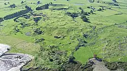 De nombreuses maunga (montagnes) étaient occupées par d'importantes pa (fortifications) maories avant la colonisation des Pākehā, et de nombreuses terrasses et autres vestiges archéologiques sont encore visibles[26]. De nombreux cônes ont été nivelés ou fortement altérés, en partie en raison de l'utilisation historique des Maoris, mais surtout en raison de l'extraction relativement récente de matériaux de construction (en particulier des éjectas). Cependant, de nombreux volcans restants sont désormais préservés en tant que monuments et parcs[8].