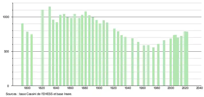 - ↑ Fiches Insee - Populations de référence de la commune pour les années 2006, 2007, 2008, 2009, 2010, 2011, 2012, 2013, 2014, 2015, 2016, 2017, 2018, 2019, 2020, 2021 et 2022.