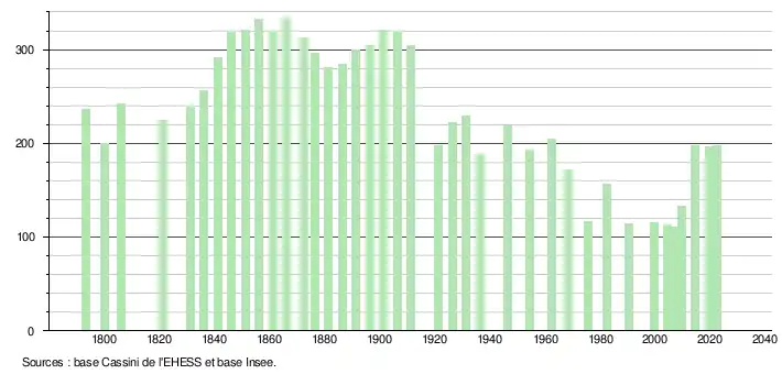 Au dernier recensement de 2022, la commune comptait 197 habitants.
