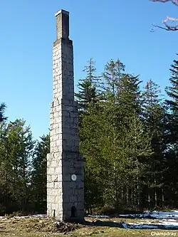 La Montagne de Spiemont et la Cheminée géodésique à (809 m d'altitude[3]), à la lisière de Champdray.